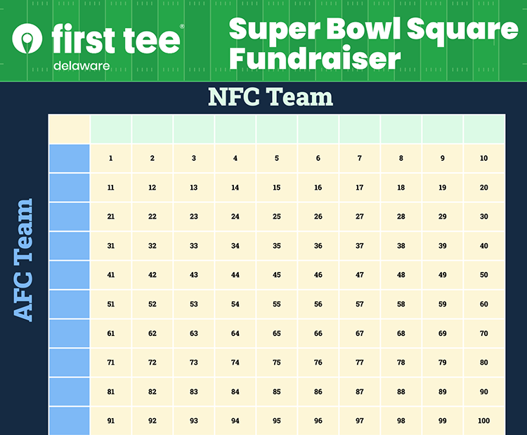 Once all squares are sold, numbers (0-9) will be randomly drawn by a First Tee – Delaware staff member and assigned randomly to the NFC & AFC team.