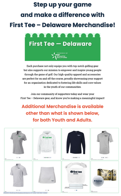 Welcome to First Tee – Delaware’s Marketplace. A resource where family & friends can Browse-Shop-Save. With every click and purchase you are saving for you and your families, all while supporting First Tee – Delaware programming, chapter-wide! Keep checking back as we will son be adding more vendors & resources.